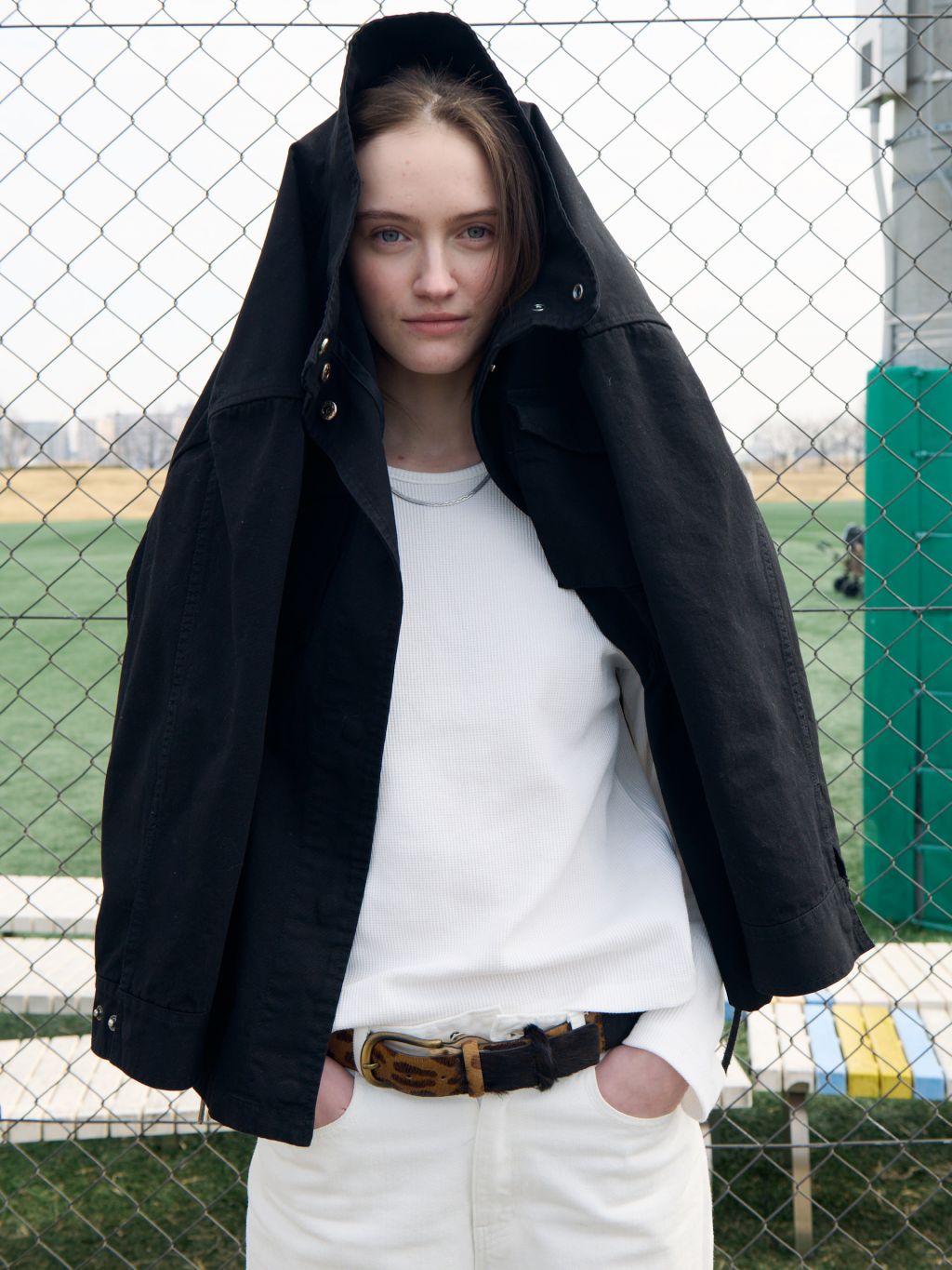 하이 네크라인과 가슴 양쪽에 배치된 러프한 아웃포켓이 눈길을 사로잡습니다. 현대적인 밀리터리 스타일을 재해석한 마릿 재킷은 오리지널리티를 유지하면서도 세련된 분위기를 연출합니다. 실루엣에 집중한 디자인으로, 착용자의 체형을 아름답게 살려줄 것입니다.
