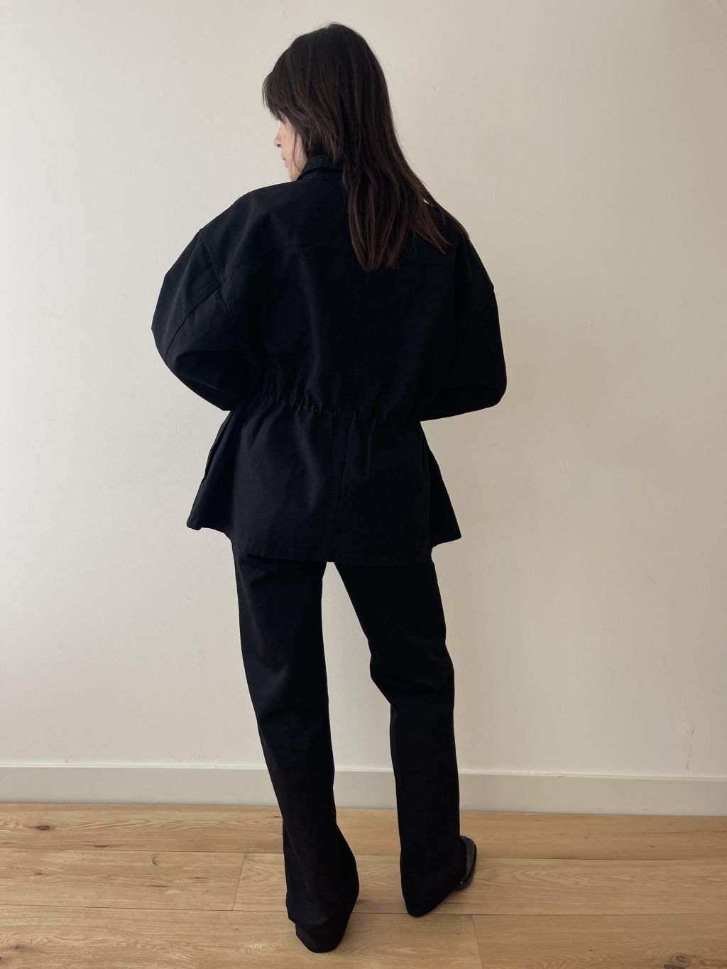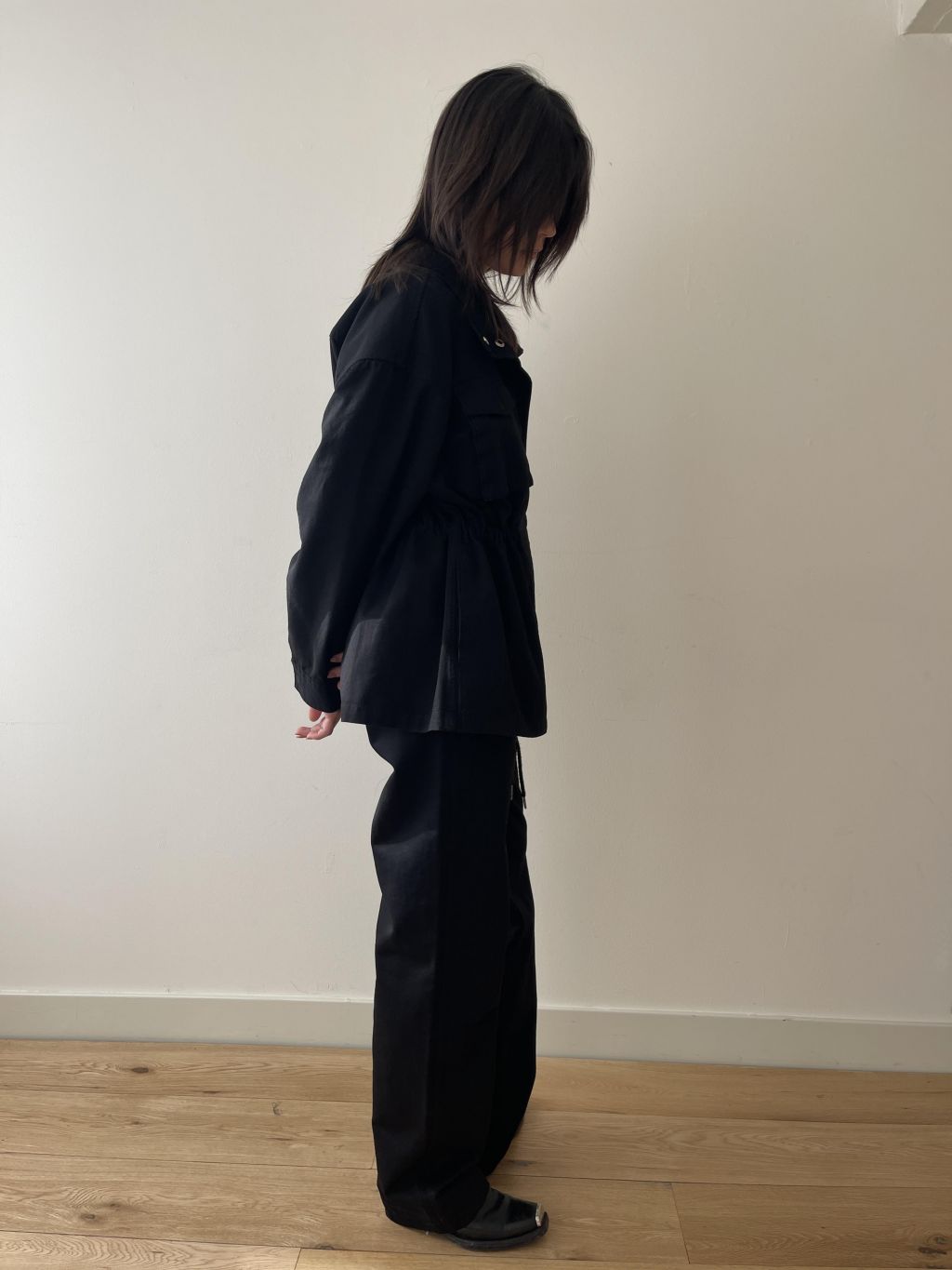 세미 오버사이즈 핏으로 여유로운 실루엣을 제공하면서도, 허리 스트링으로 체형에 맞게 조절할 수 있습니다. 이를 통해 부해 보이지 않으면서 허리선을 강조해 여성스러운 매력을 뽐낼 수 있습니다. 스냅 버튼 디테일로 그날의 기분과 스타일에 맞춰 다양한 연출이 가능합니다.