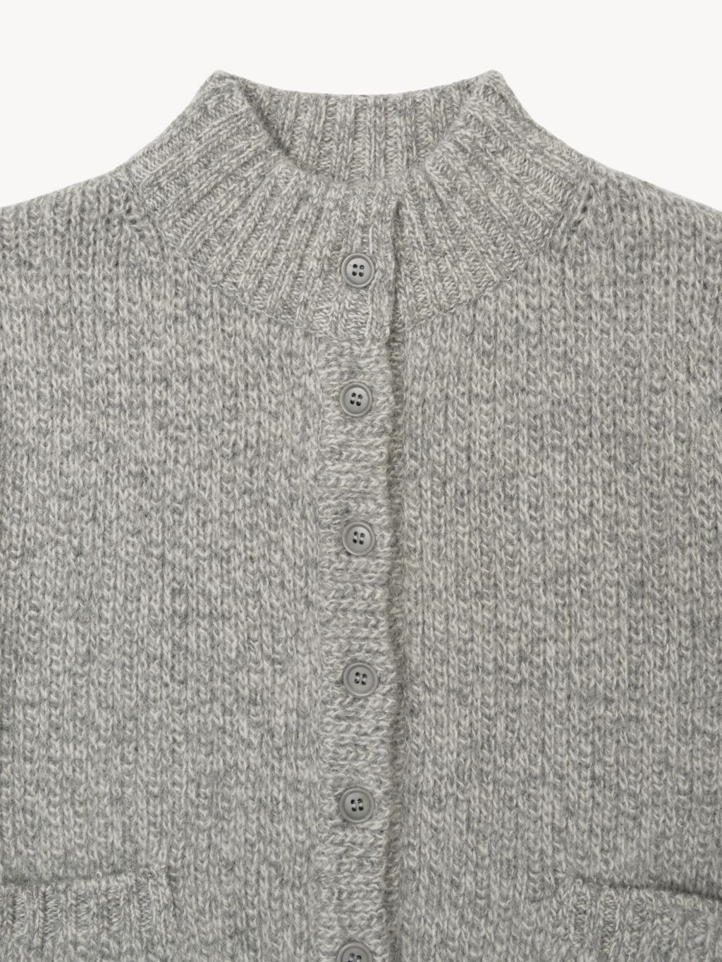 스탠딩 칼라 디자인은 목을 부드럽게 감싸며 바람을 막아 체온을 유지하는 기능성을 더합니다. 앞면의 두 개의 포켓은 작은 소지품을 보관하기에 실용적이며, 가디건의 균형을 잡아주는 디자인 요소로 함께 작동합니다. 단독으로 입어도, 재킷처럼 걸쳐도 담백한 따뜻함과 부드러운 존재감을 남깁니다.