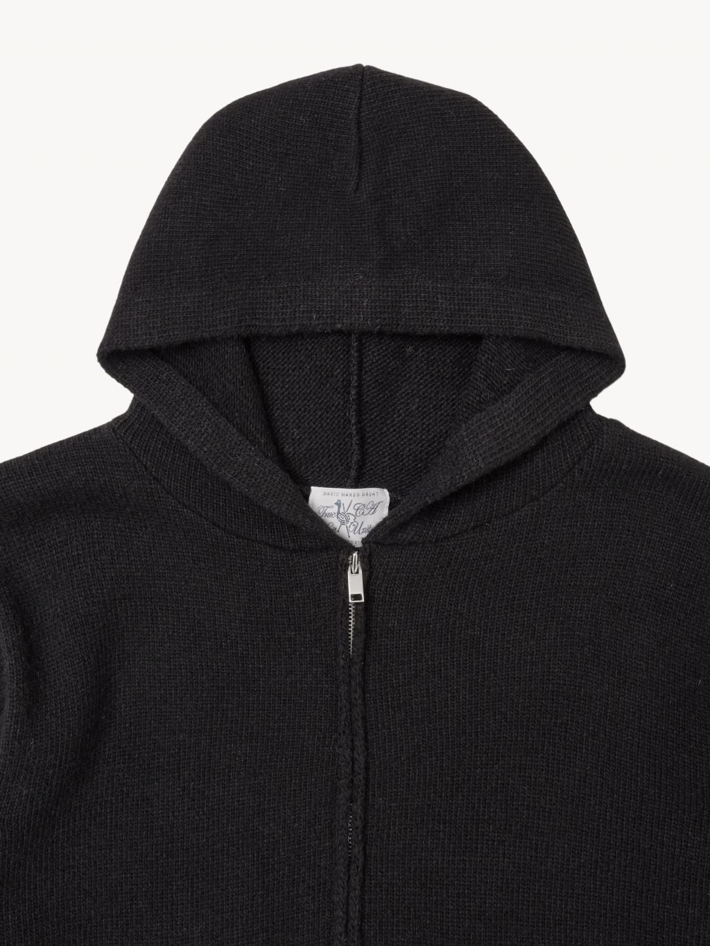 적당한 볼륨의 게이지와 세밀한 리브 조직은 빛의 방향에 따라 깊이와 결이 달리 보이며, 스웻의 캐주얼함 속에 단정한 고급스러움을 더합니다. 스탠다드 사이즈의 후드 라인은 얼굴선을 자연스럽게 감싸며, 바라클라바 없이도 충분한 보온성과 구조적인 완성도를 제공합니다.