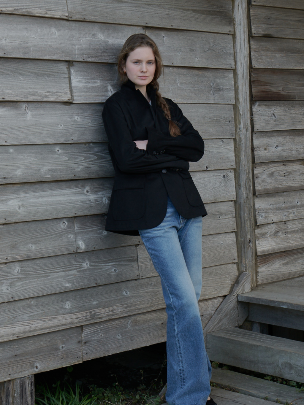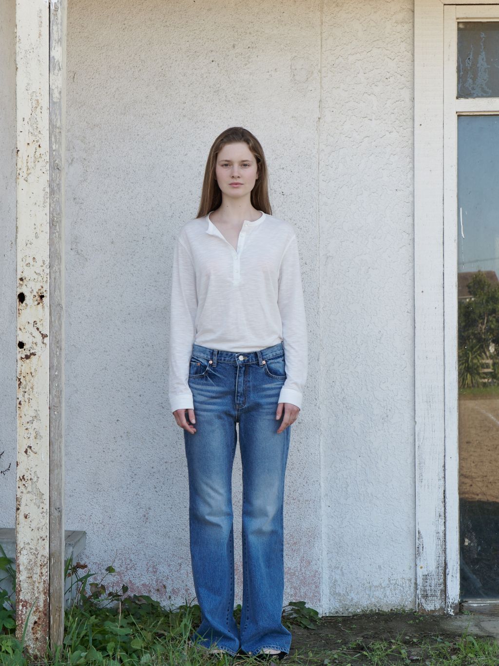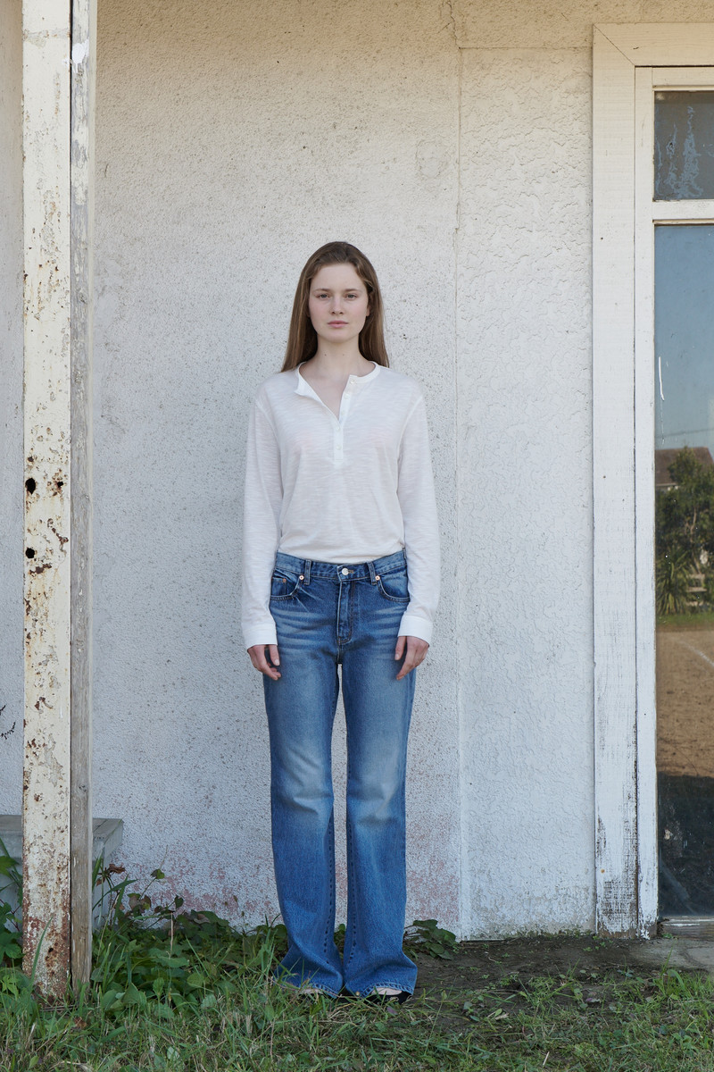 프렌치 빈티지 스타일에서 영감을 받은 벨보텀 데님 팬츠(Bellbottom Denim Pants)입니다. 4계절 착용 가능한 데님 소재입니다. 오랫동안 내 몸에 맞게 착용해 생긴 것 같은 자연스러운 워싱이 특징입니다. 허리부터 무릎까지 타이트하고 무릎 아래로 넓어져 다리가 길어 보이는 실루엣을 연출합니다.