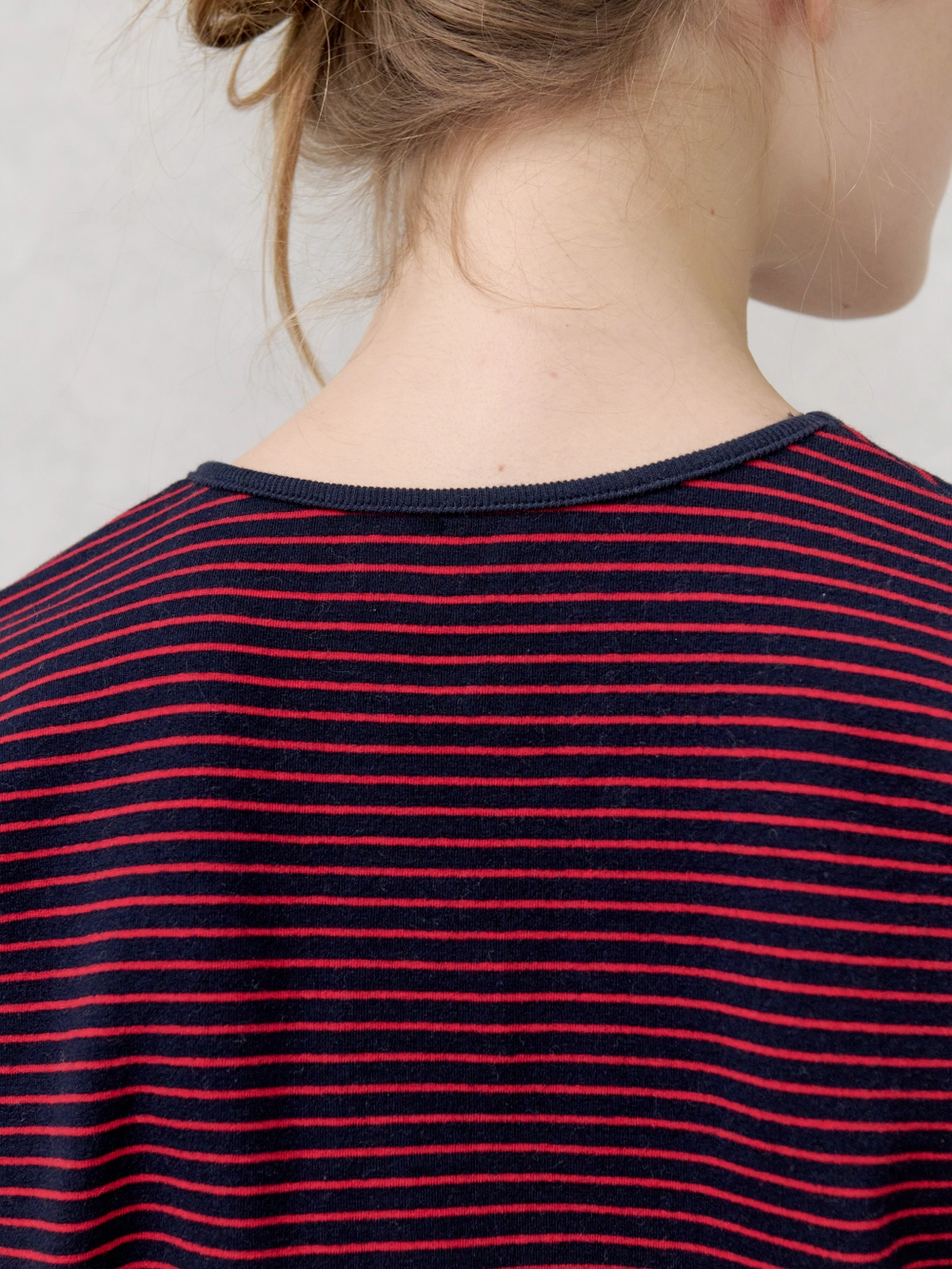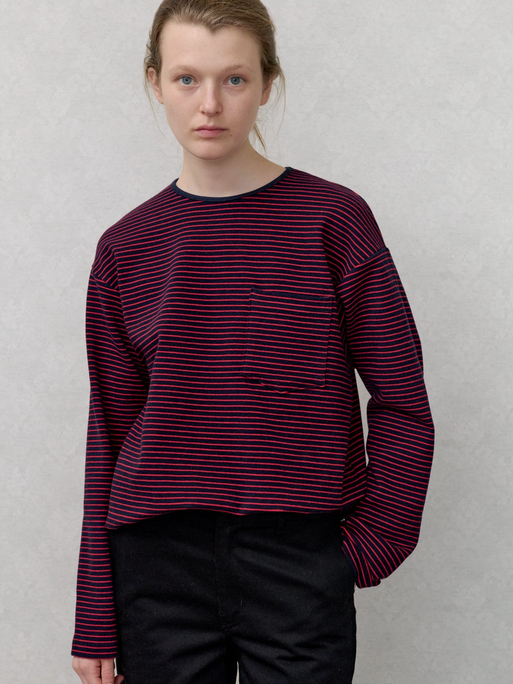 넉넉한 품과 기장으로 여유롭고 편안한 레귤러 핏입니다. 가슴에 위치한 포켓은 실용적고 디자인에 포인트를 더해주며, 얇고 부드럽게 처리된 넥 라인은 착용감을 더욱 쾌적하게 만들고 세련된 포인트입니다.